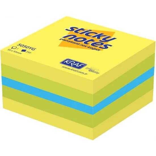 KRAF Yapışkanlı Not Kağıdı Küp 50x50, küçük alanlarda bile not alma alışkanlığınızı destekleyerek gününüzü daha planlı geçirmenize yardımcı olur.